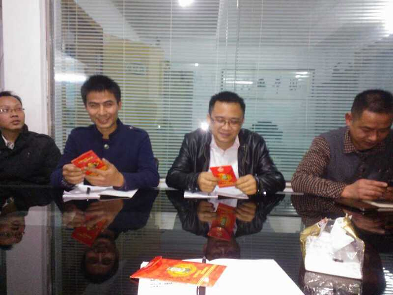 年終歲末,辭舊迎新,鵬耀電子科技有限公司召開了2014年度總結會議,公司全體班組成員參會。董事長(胡永)、總經(jīng)理(周正恩)出席了本次會議并作了重要講話。總結了公司2014年度工作進度和已完成的工作項目。為2015年的工作提出建議和要求。 會后對每位班組成員發(fā)放年終福利。