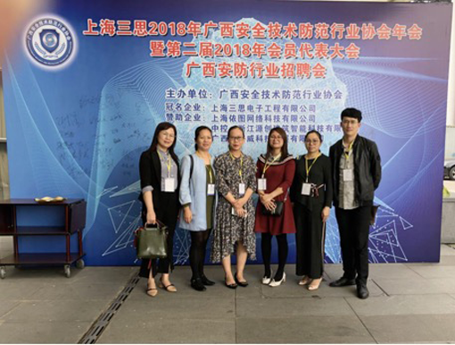 2018年3月22日, “2018年廣西安全技術防范行業(yè)協會年會”暨“第二屆2018年會員代表大會”、“廣西安防行業(yè)招聘會”在廣西南寧會展中心如期舉行,我公司派出代表參加會議及招聘會。