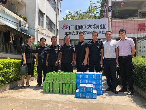 秉承著往年“人文關(guān)懷,關(guān)愛基層”的優(yōu)良傳統(tǒng),副總經(jīng)理唐芳、市場部經(jīng)理胡森代表公司,再一次為廣西恒大北湖安居小區(qū)物業(yè)人員送去真摯的問候以及貼心的禮物。