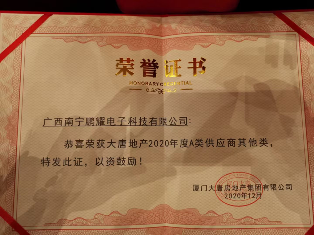 2020年12月31日,大唐集團(tuán)在廈門舉行“2020年度大唐地產(chǎn)供應(yīng)商答謝會”,會上“鵬耀科技”繼2019年再次榮獲“大唐地產(chǎn)(股票代碼:2117.HK)2020年A類供應(yīng)商”,公司總經(jīng)理周正恩應(yīng)邀前往廈門大唐集團(tuán)參加活動。