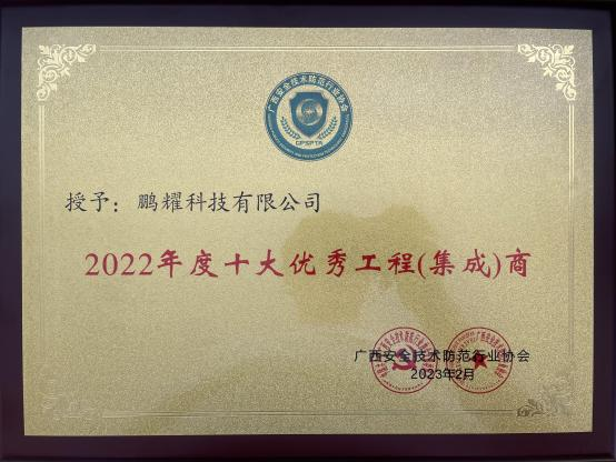 2022年度廣西安防行業(yè)“十大優(yōu)秀工程(集成)商”
