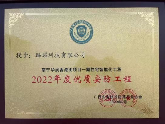 我公司“鵬耀科技”再度榮獲“2022年度廣西行業(yè)十大優(yōu)秀工程(集成)商”及承建項(xiàng)目“南寧華潤香港街項(xiàng)目一期住宅智能化工程”榮獲“2022年度優(yōu)質(zhì)工程”,公司副總經(jīng)理唐芳應(yīng)邀出席,并上臺(tái)領(lǐng)獎(jiǎng)。